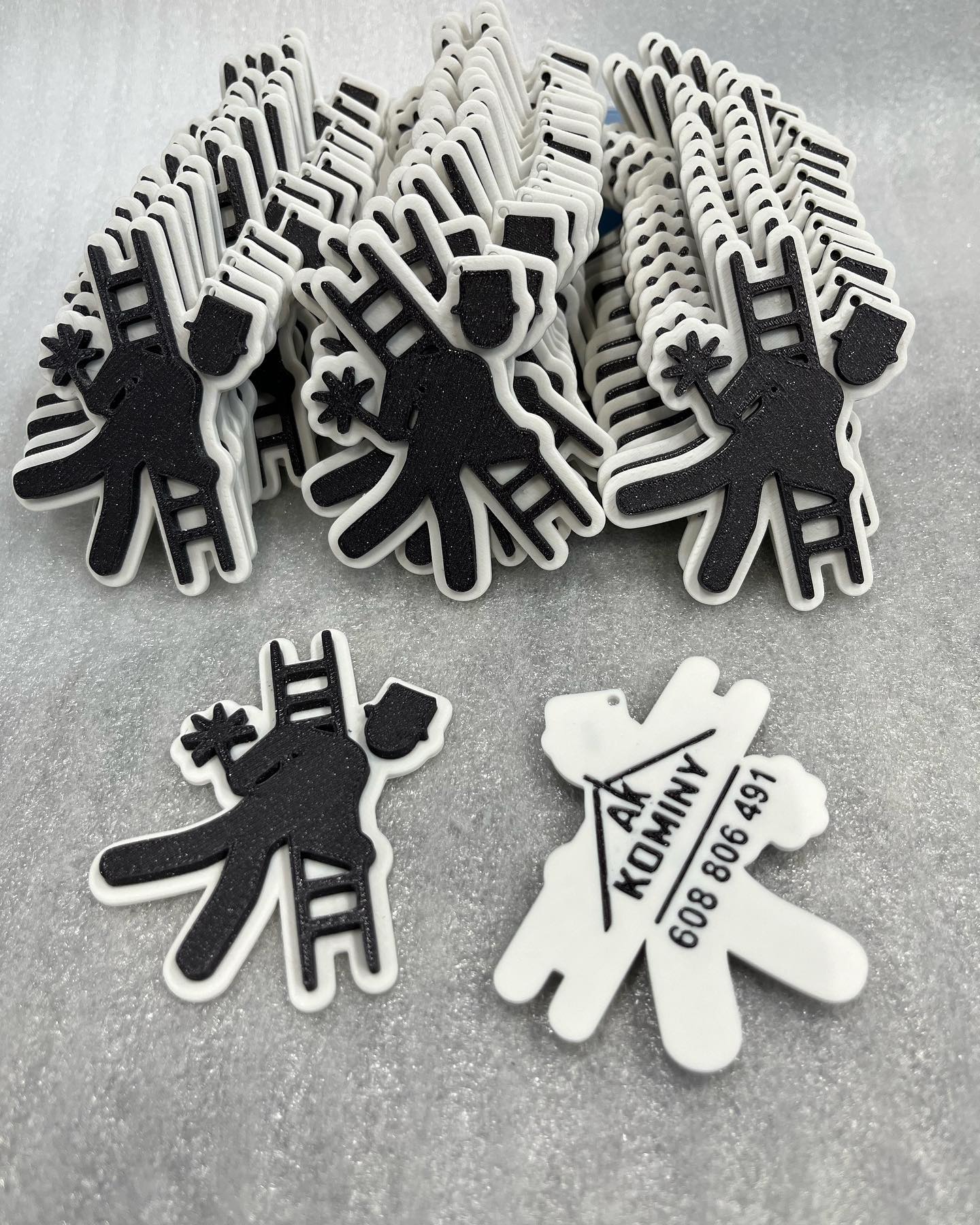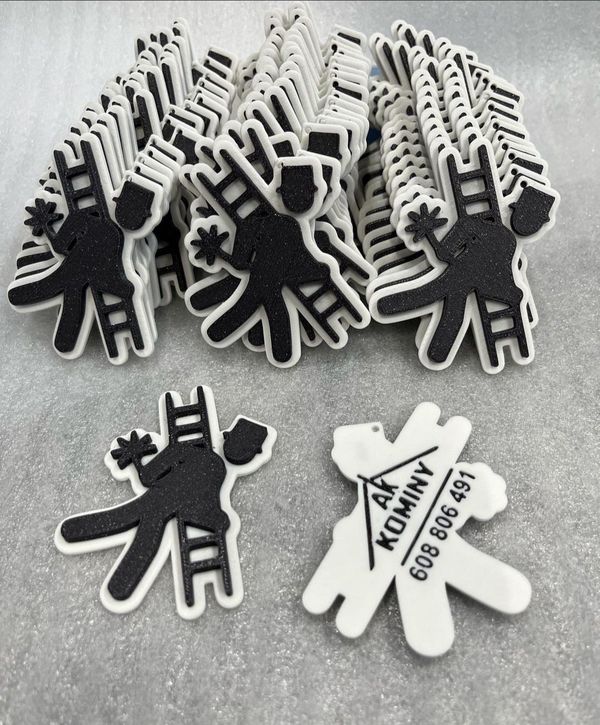 Pro společnost AKkomíny s.r.o. jsme nejprve zpracovali prototypy komínových vložek, kde jsme díky přesnému 3D tisku a modelování pomohli ověřit a optimalizovat funkčnost těchto technických dílů. Následně jsme vytvořili i originální klíčenky s designem na míru, které slouží jako efektivní a reprezentativní propagační předměty. Tento projekt ukazuje naši schopnost pokrýt jak technické, tak marketingové potřeby klienta v jednom komplexním řešení.