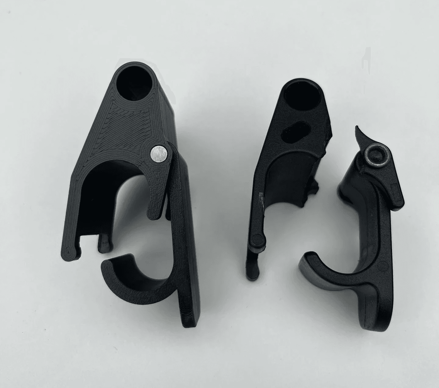 Na fotografii vpravo je původní rozbitý díl, vlevo přesná 3D tištěná náhrada od nás. Výroba náhradních dílů bez dostupné dokumentace, jen podle originální předlohy, pro nás není problém díky našim zkušenostem s přesným měřením a modelováním. Výsledné díly jsou pevné, odolné a přesně padnou na své místo. Potřebujete-li spolehlivou náhradu plastových dílů či jiných výrobků, obraťte se na nás pro rychlé a kvalitní řešení na míru.